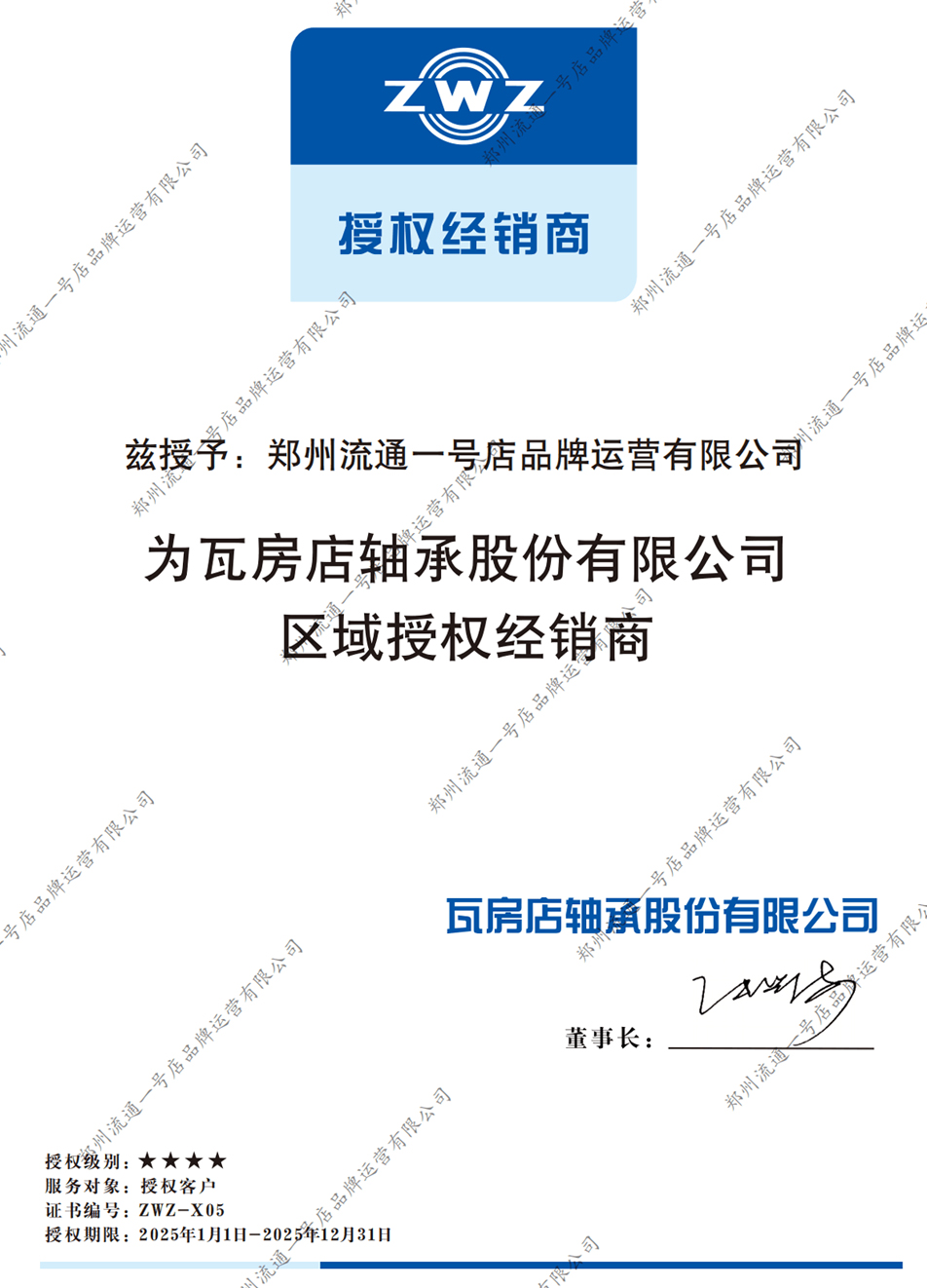 ZWZ授權證書